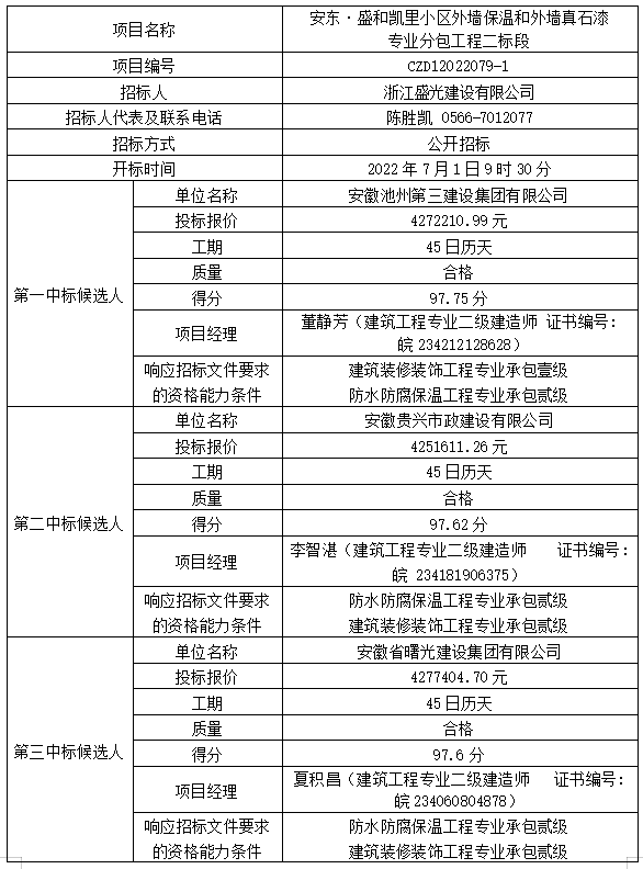 金年会体育&jingytiddot;盛和凯里小区外墙保温和外墙真石漆 专业分包工程二标段中标候选人公示